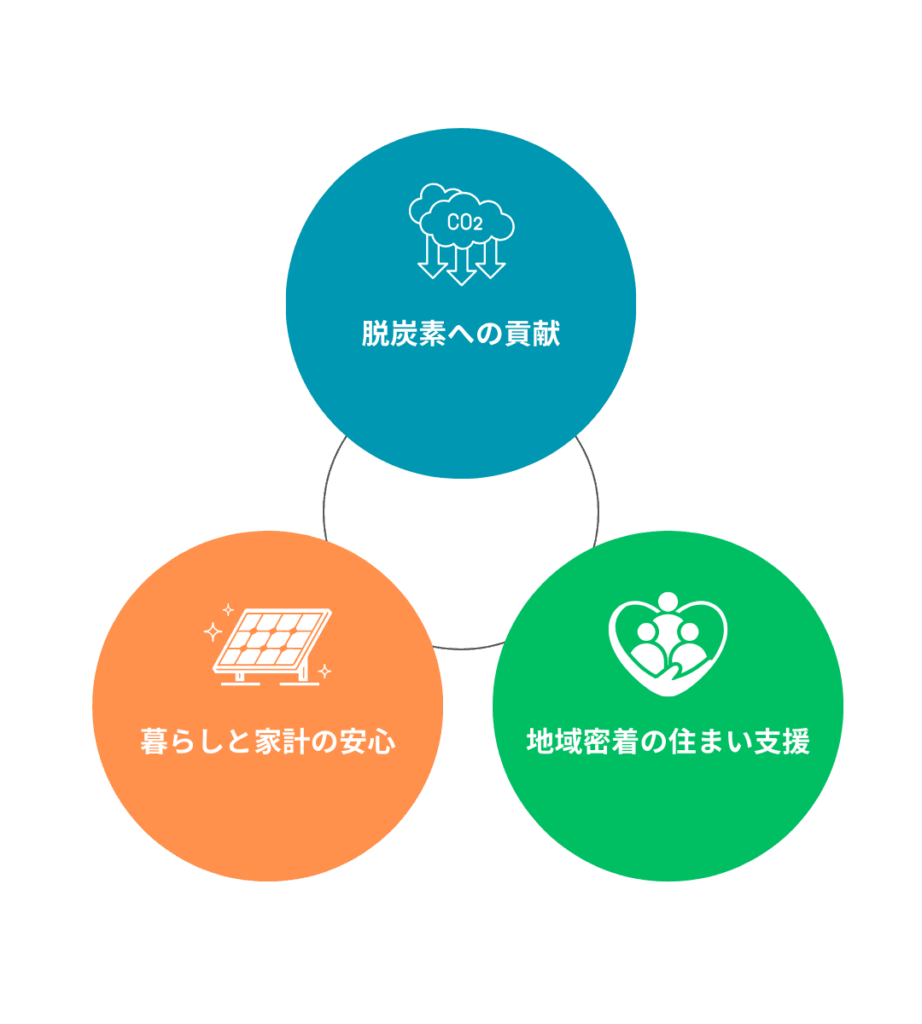 再生可能エネルギーである太陽光発電を戸建て住宅に普及させることで、CO₂排出量の削減に貢献。持続可能なエネルギー社会の実現を支えます。